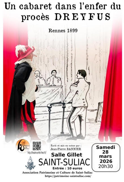 Samedi 28 Mars 2026, 20h30 Salle Gillet à Saint-Suliac, sera jouée la pièce de théatre « Un Cabaret dans l’enfer du procès Dreyfus ».